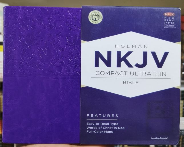 The NKJV Compact Ultrathin Bible is easy to read and easy to carry. Available in a wide variety of colors and bindings, its features include four full-color maps, a presentation page, and two-piece die-cut gift box.